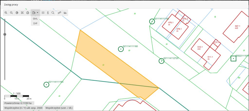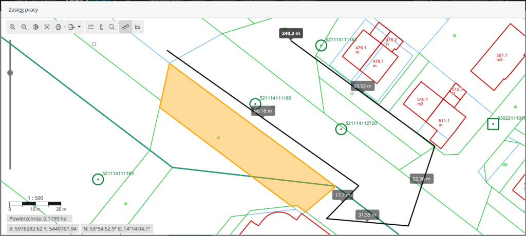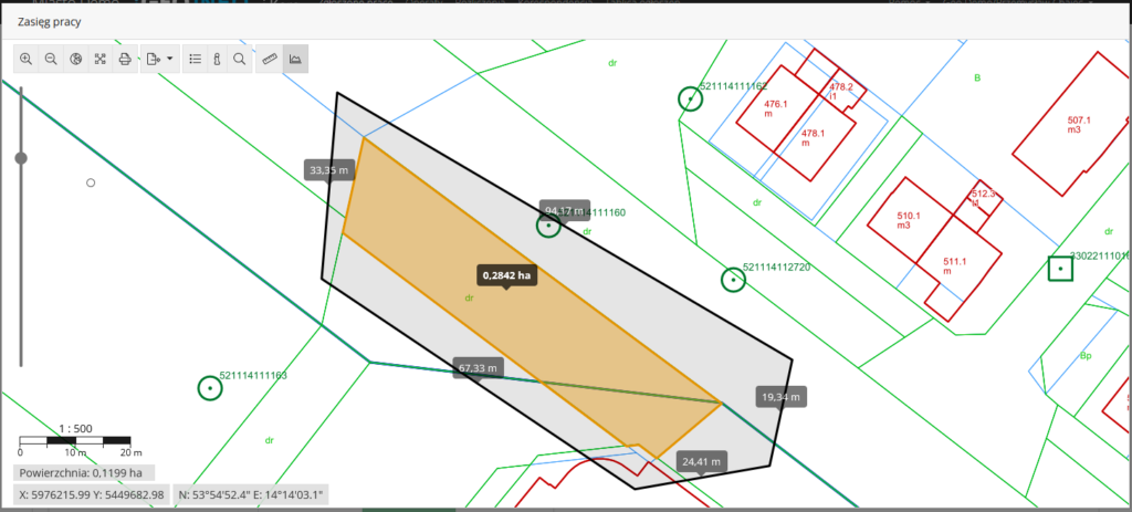 Pomiar powierzchniPomiar odległościEksport geometrii zasięgu